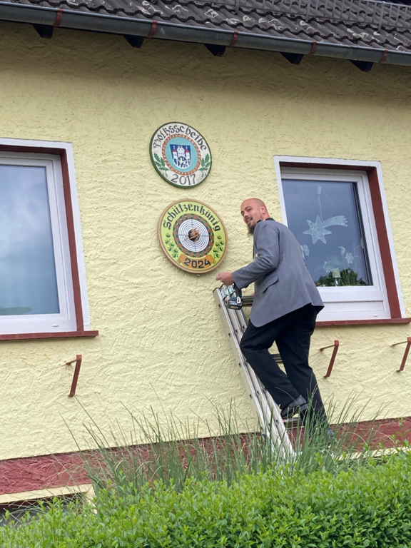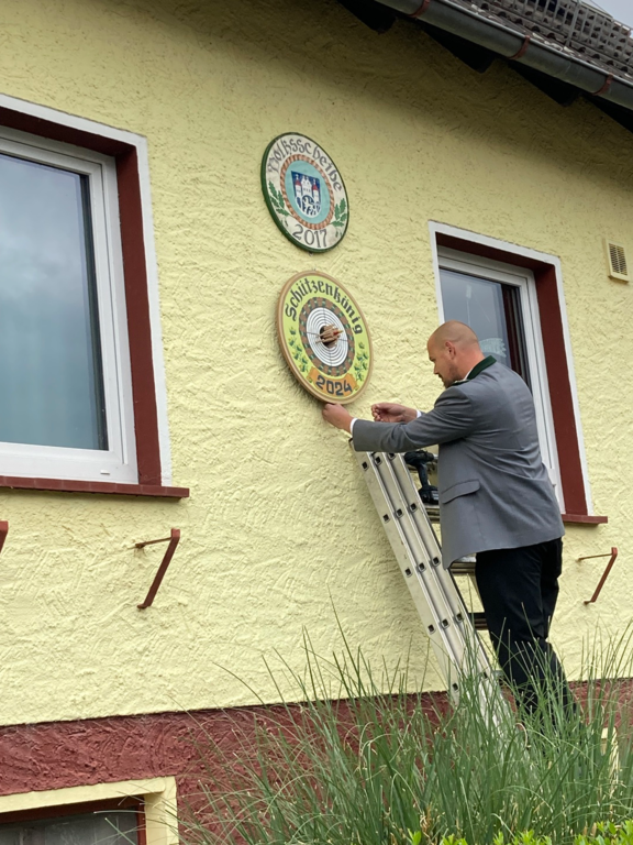Aufhängen der Königsscheiben am 24. Mai bei der Königin Martina Pramann und dem König Andreas Schulz