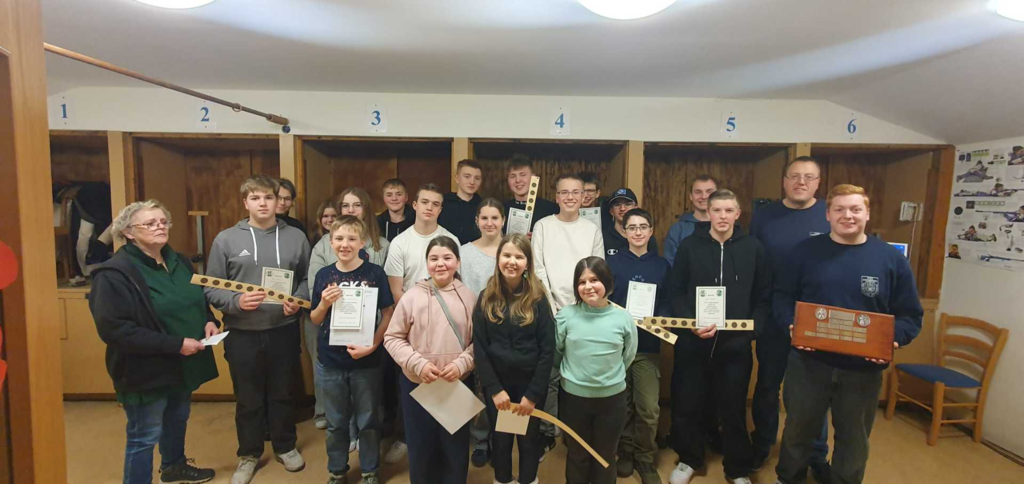 Beim Schützenverein belegte Tim Genditzki mit 50 Ringen den 1. Platz, Alexander Hörling den 2. Platz mit 48 Ringen und Gina Jakob mit 46 Ringen den 3. Platz.
